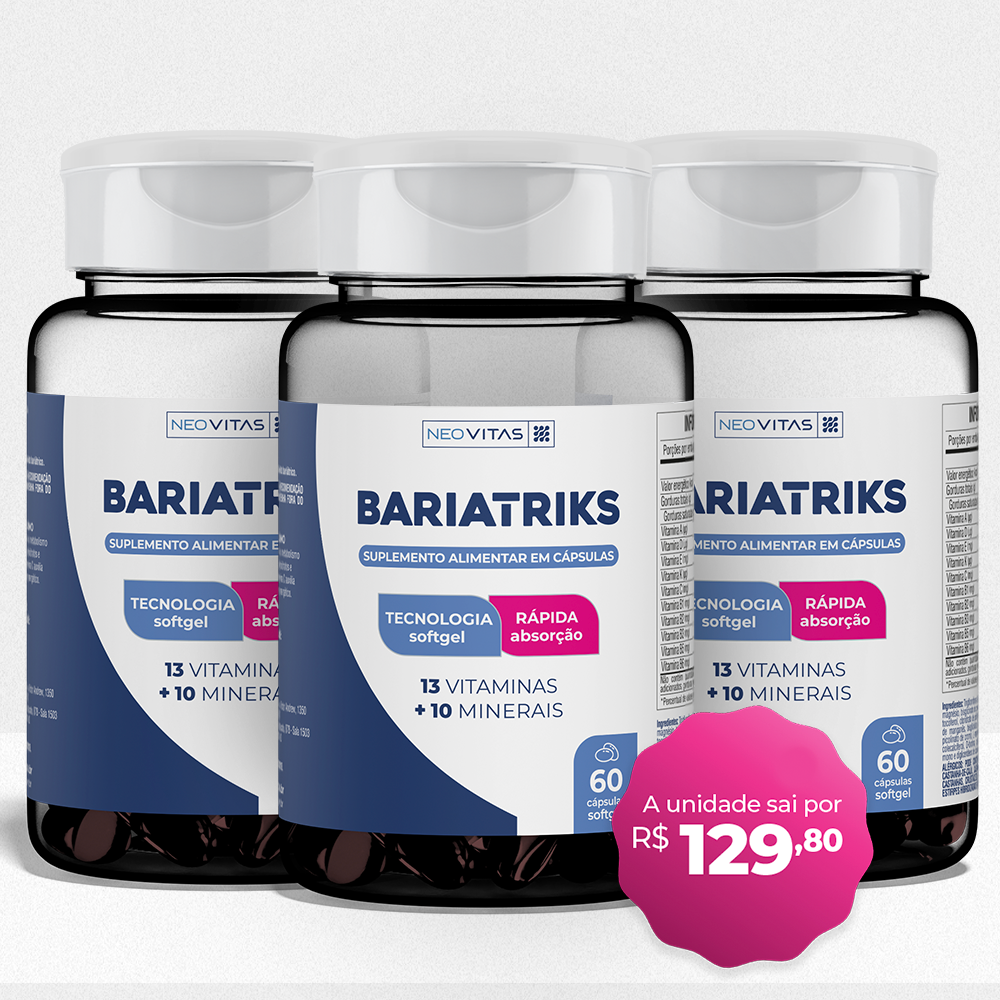 3 frascos de Suplemento Bariatriks em Cápsulas Softgel - 60 Cápsulas cada = 180 Cápsulas